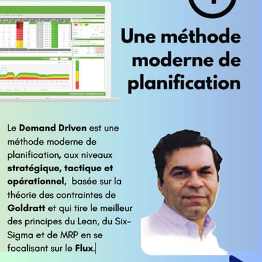 Le Demand Driven est une méthode moderne de planification, aux niveaux stratégique, tactique et opérationnel, basée sur la théorie des contraintes de Goldratt et qui tire le meilleur des principes du Lean, du Six-Sigma et de MRP en se focalisant sur le Flux.